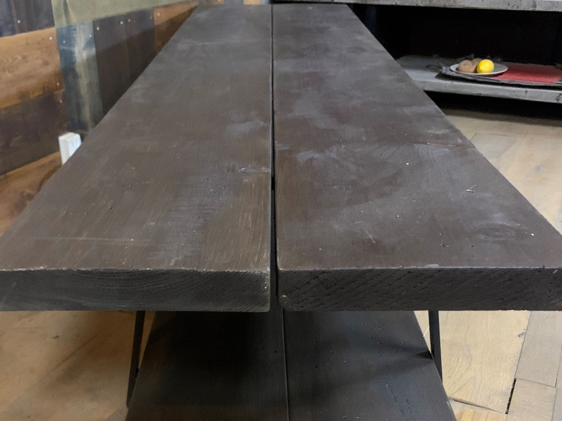 | アイアンレッグサイズ | D(奥行)380mm x H(高さ)390mm x W(幅)25mm 黒皮鉄オイル仕上 フラットバー9mm x 25mm使用 |