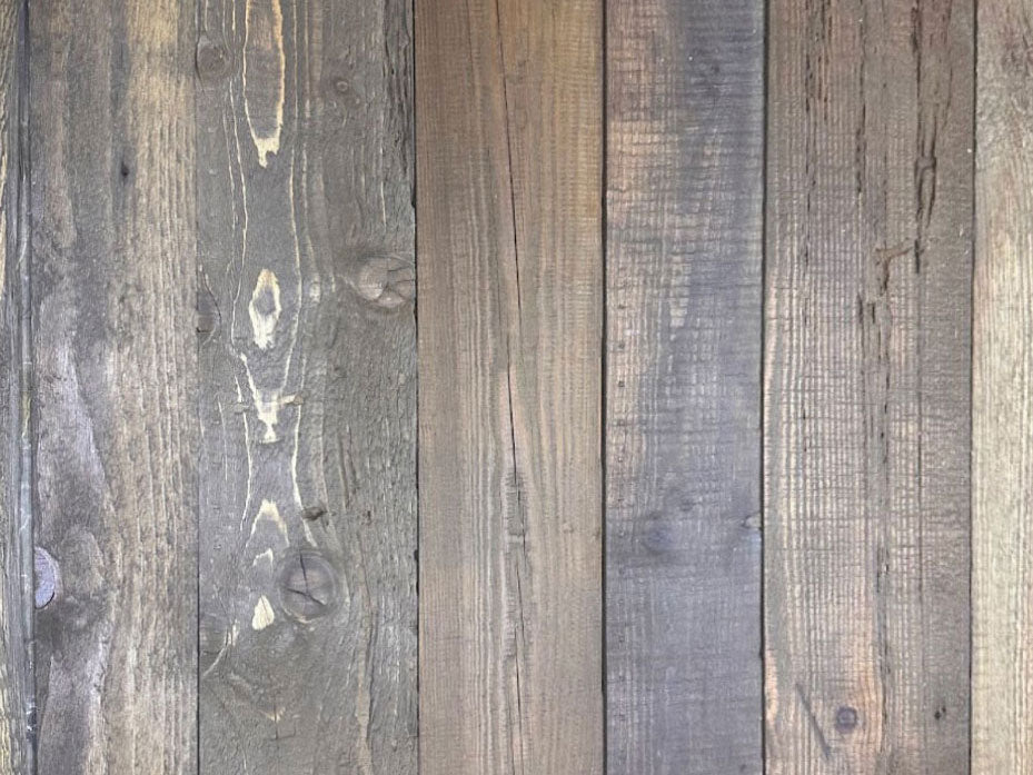 古材面は1面なので壁面や什器の面材として最適です。最長2400mmまで対応可能です。