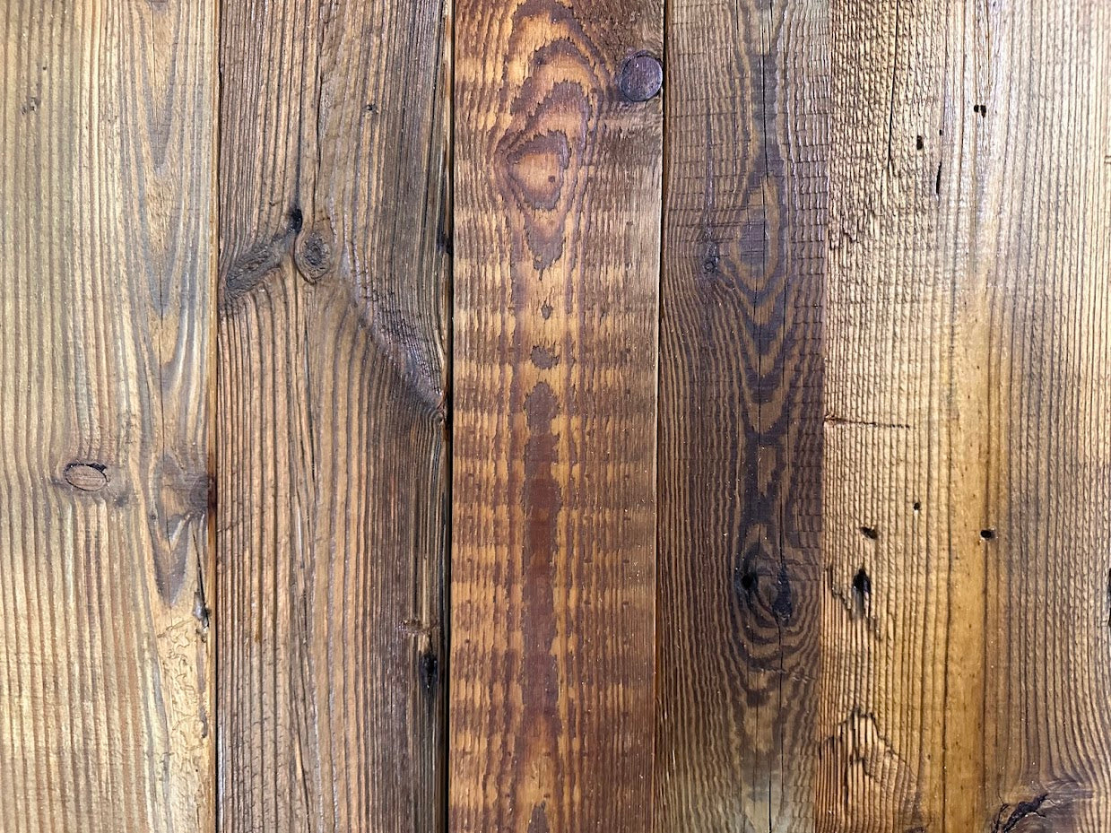 古材面は1面なので壁面や什器の面材として最適です。最長2400mmまで対応可能です。